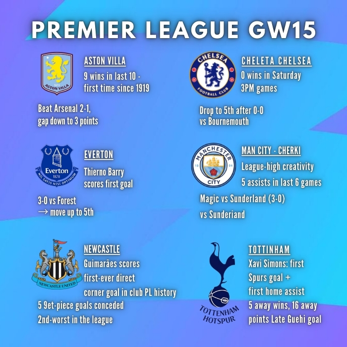 ပရီးမီးယားလိဂ် Gameweek ၁၅ ကနေ လူအများစု သတိမထားမိခဲ့တဲ့ စိတ်ဝင်စားဖွယ် အချက်လက်နဲ့စံချိန်မှတ်တမ်းများ