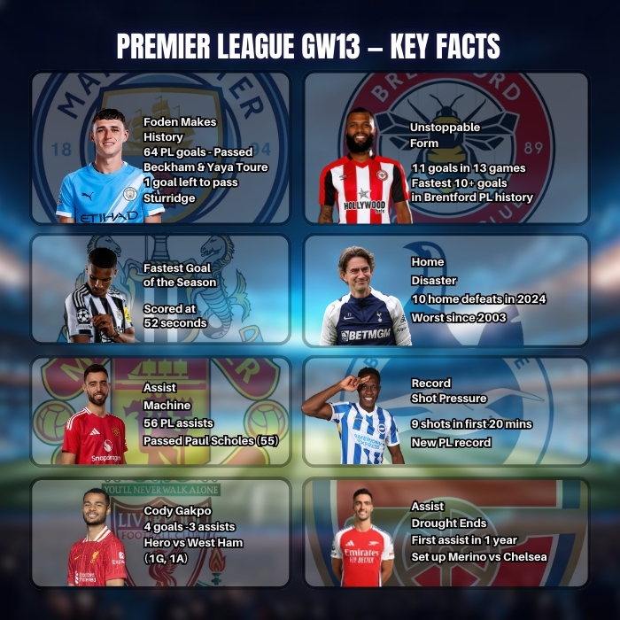 ပရီးမီယားလိဂ် Gameweek 13 ရဲ့ စိတ်ဝင်စားဖွယ် ကိန်းဂဏန်း နဲ့ စံချိန်မှတ်တမ်းများ