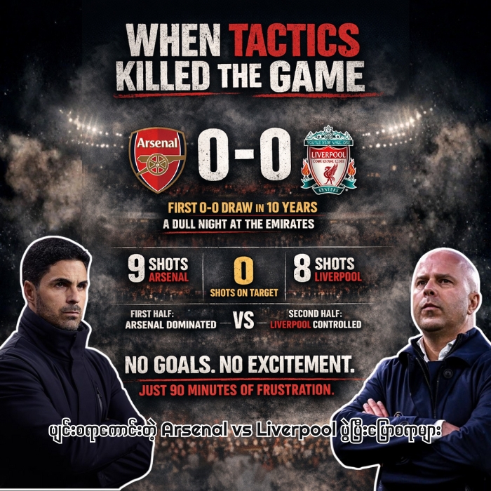 ဒါကတော့ Arsenal နဲ့ Liverpool တို့ရဲ့ ထိပ်တိုက်တွေ့ဆုံမှုမှာ ဂိုးမရှိသရေနဲ့ ပွဲပြီးသွားခဲ့တဲ့အပေါ်